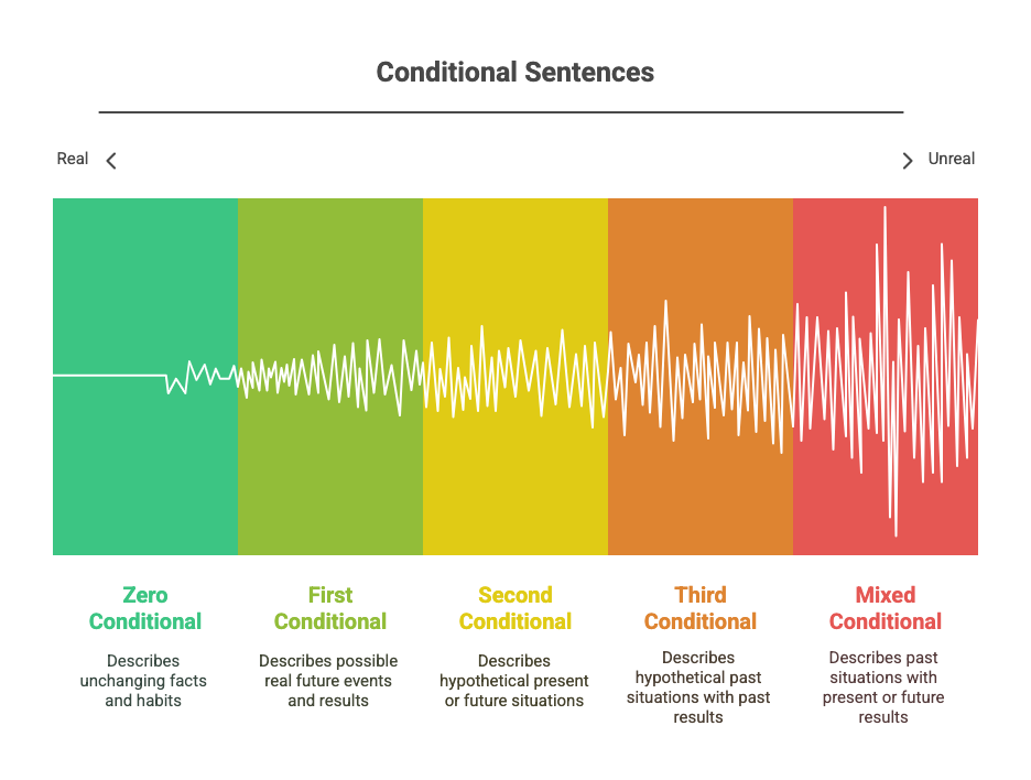 | Conjunction | Real Conditional (Zero and First) | Unreal Conditional (Second, Third, and Mixed) |